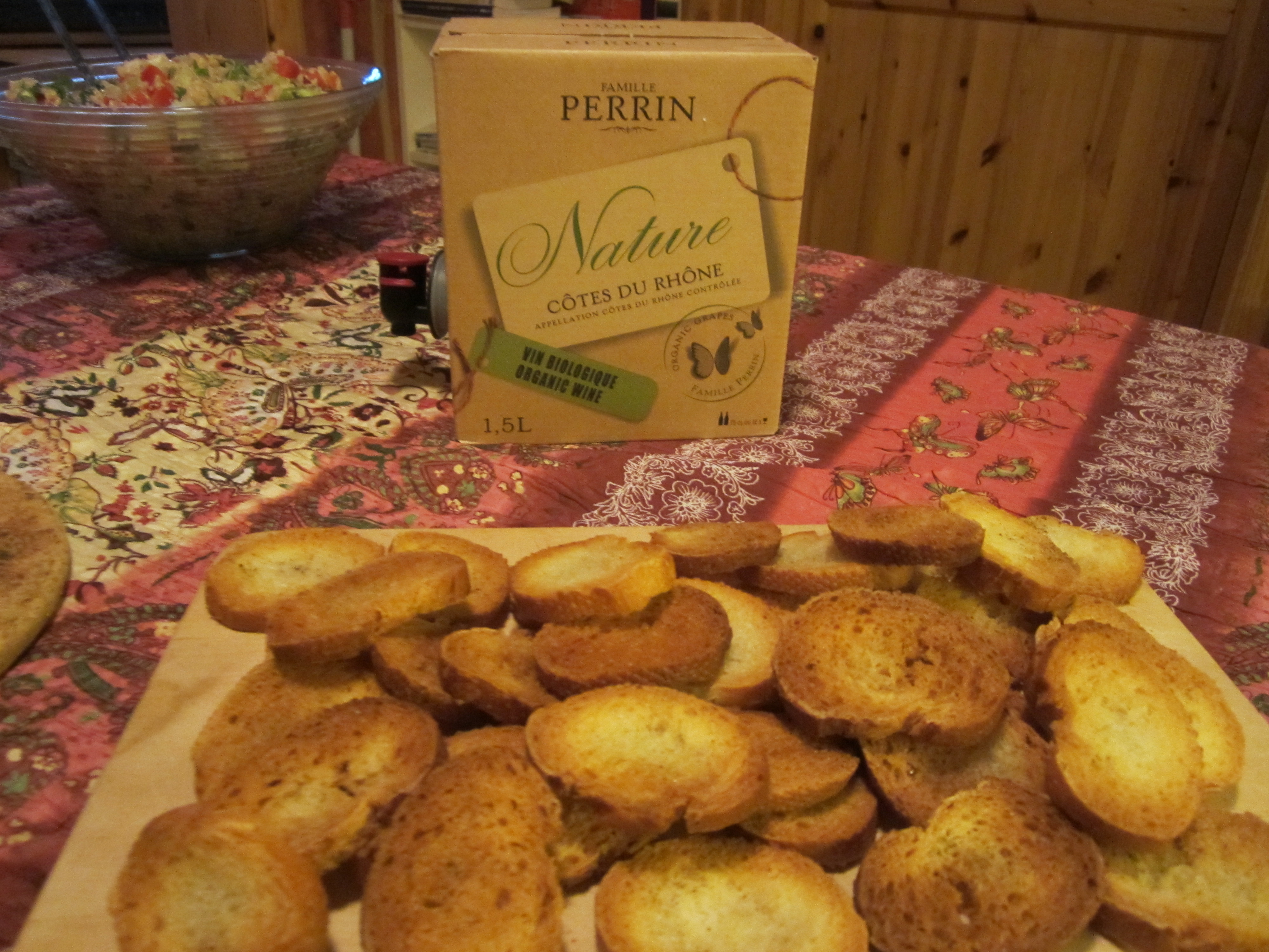 Crostini er omtrent så enkelt som det kan få blitt. Jeg kjøpte ferdige baguetter i butikken. Det er bare en fordel at brødet er litt tørt.