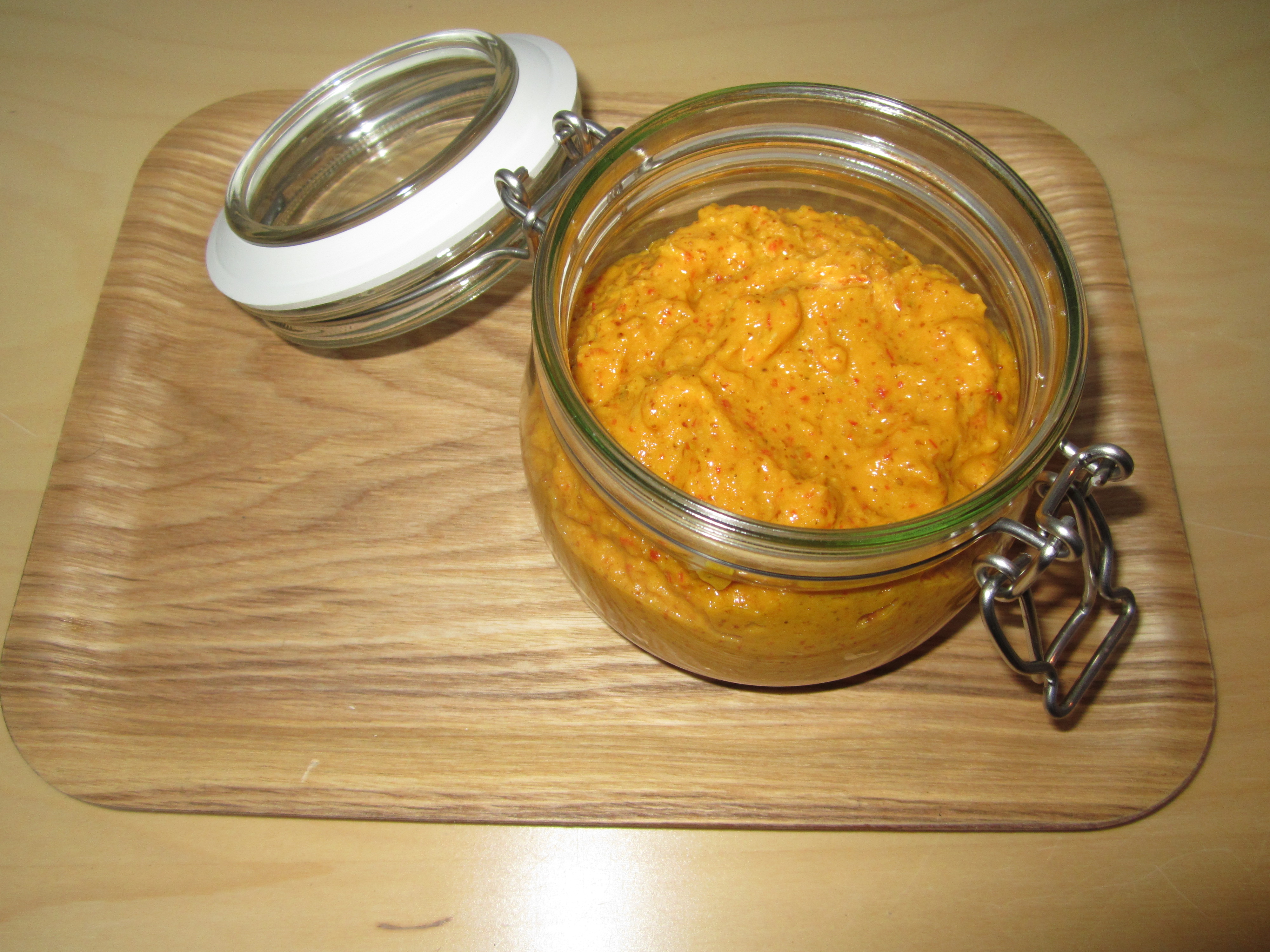 Eddiken fungerer som konservering og sausen er holdbar helt opp til et år i kjøleskap.