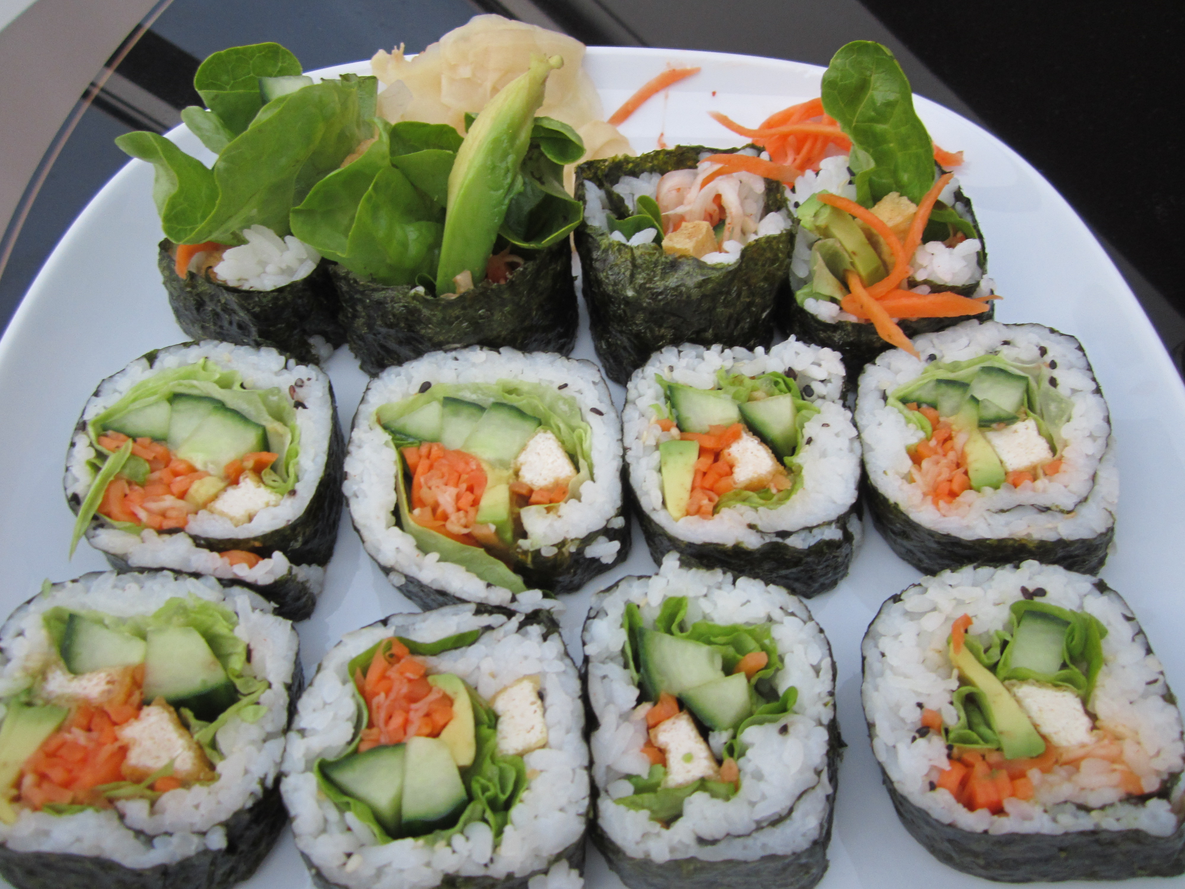Jeg tror absolutt alle steder som lager sushi har en form for vegetar roll på menyen. Hvis ikke er det bare å be dem bytte ut fisken med grønnsaker. Noen ganger er utvalget veldig basic, gjerne agurk eller avokado. Stekt tofu er også et alternativ som går igjen ganske ofte. Jeg har ennå til gode å finne et virkelig eksepsjonelt bra sushisted for veganere i Oslo, men er i alle fall fornøyd med at det er såpass enkelt å oppdrive veganske alternativer. Prisen er det heller ikke så mye å si på, det pleier å ligge på rundt 50 kroner for en makirull.