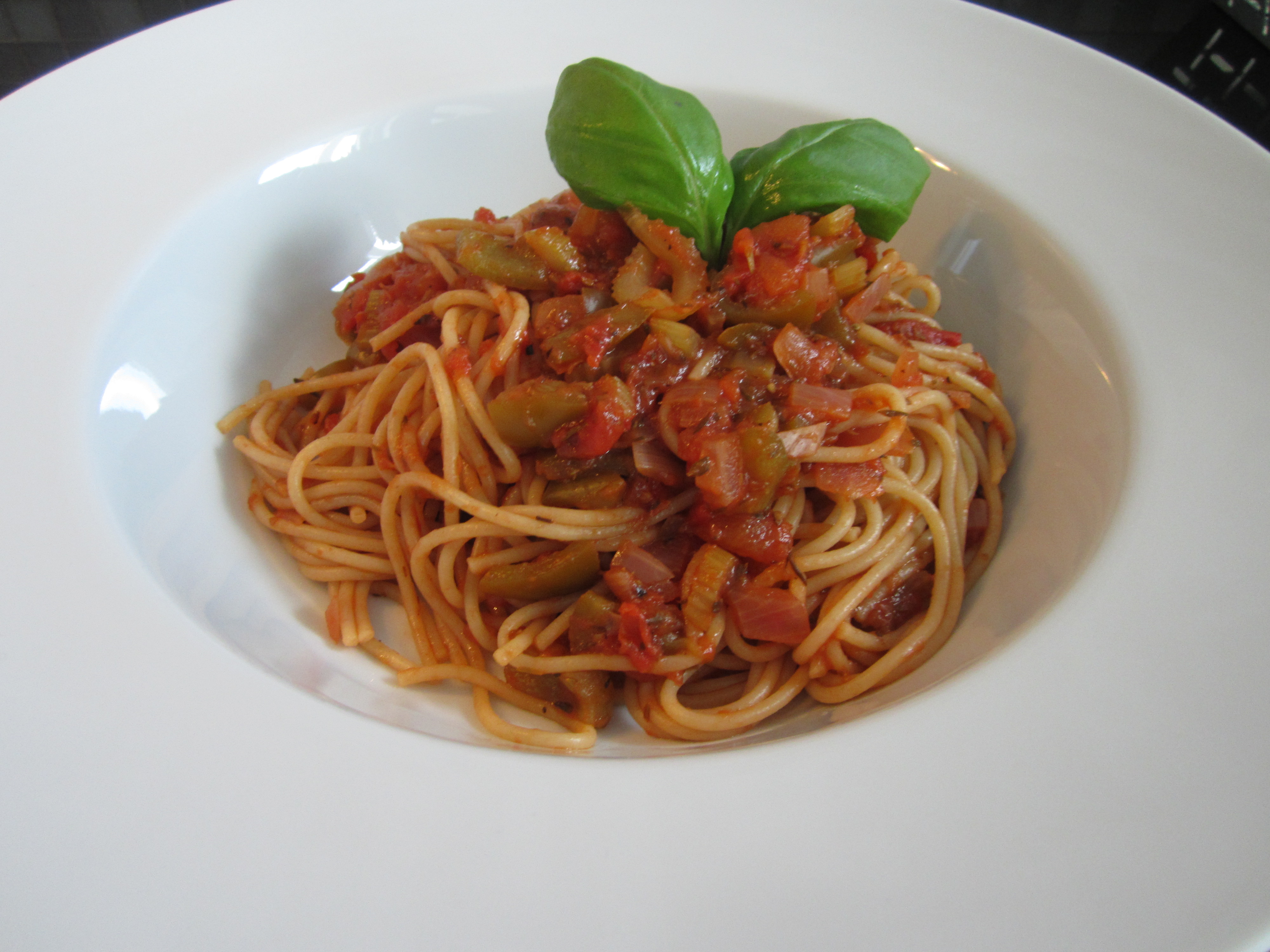 Kok i mellomtiden opp spaghetti. Sausen holder til cirka to store porsjoner.