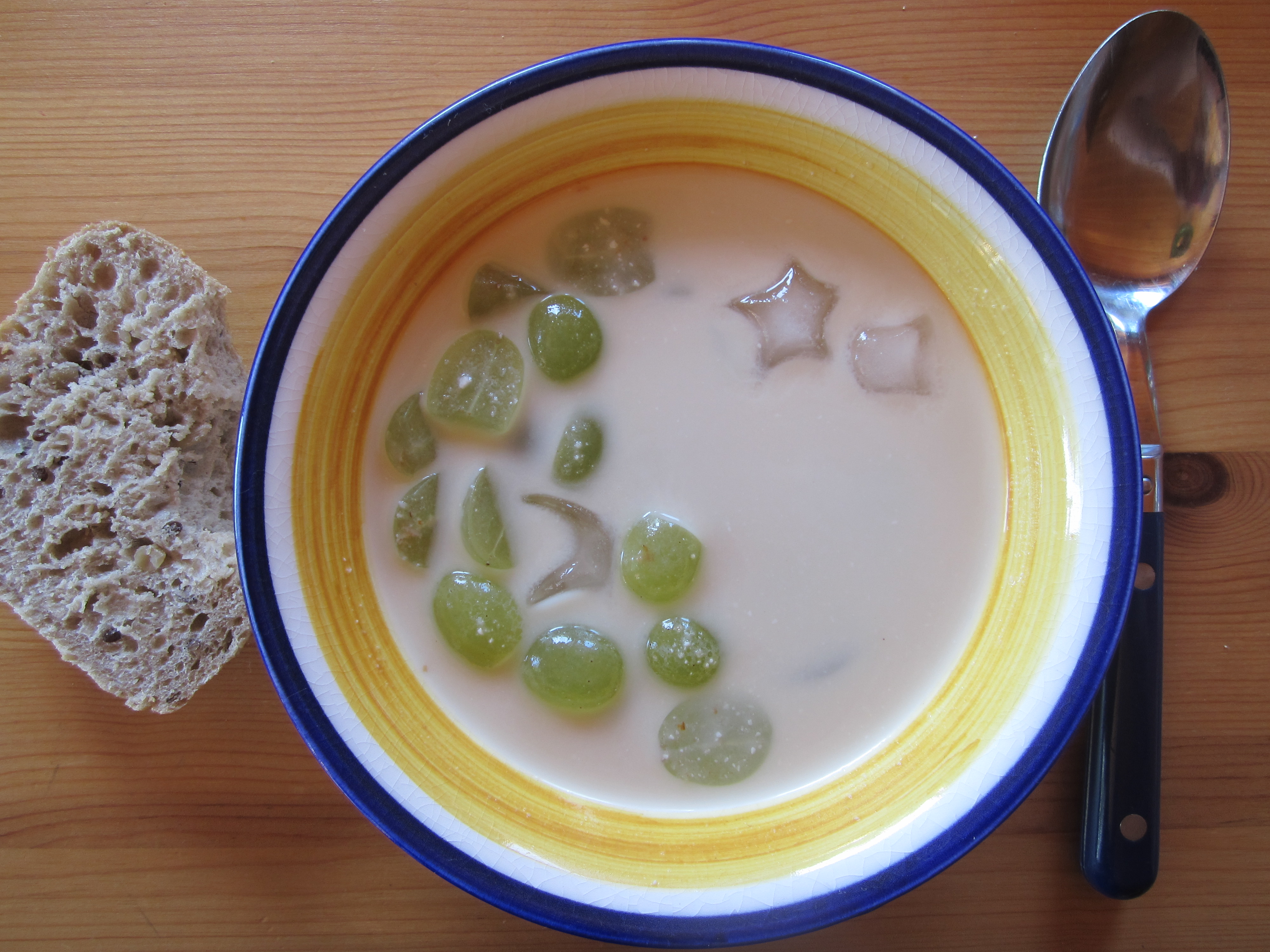 Sopa de Ajo Blanco con Uvas, altså hvitløksuppe med druer. Dette er en kald suppe, opprinnelig fra Malaga som smaker strålende i sommervarmen.