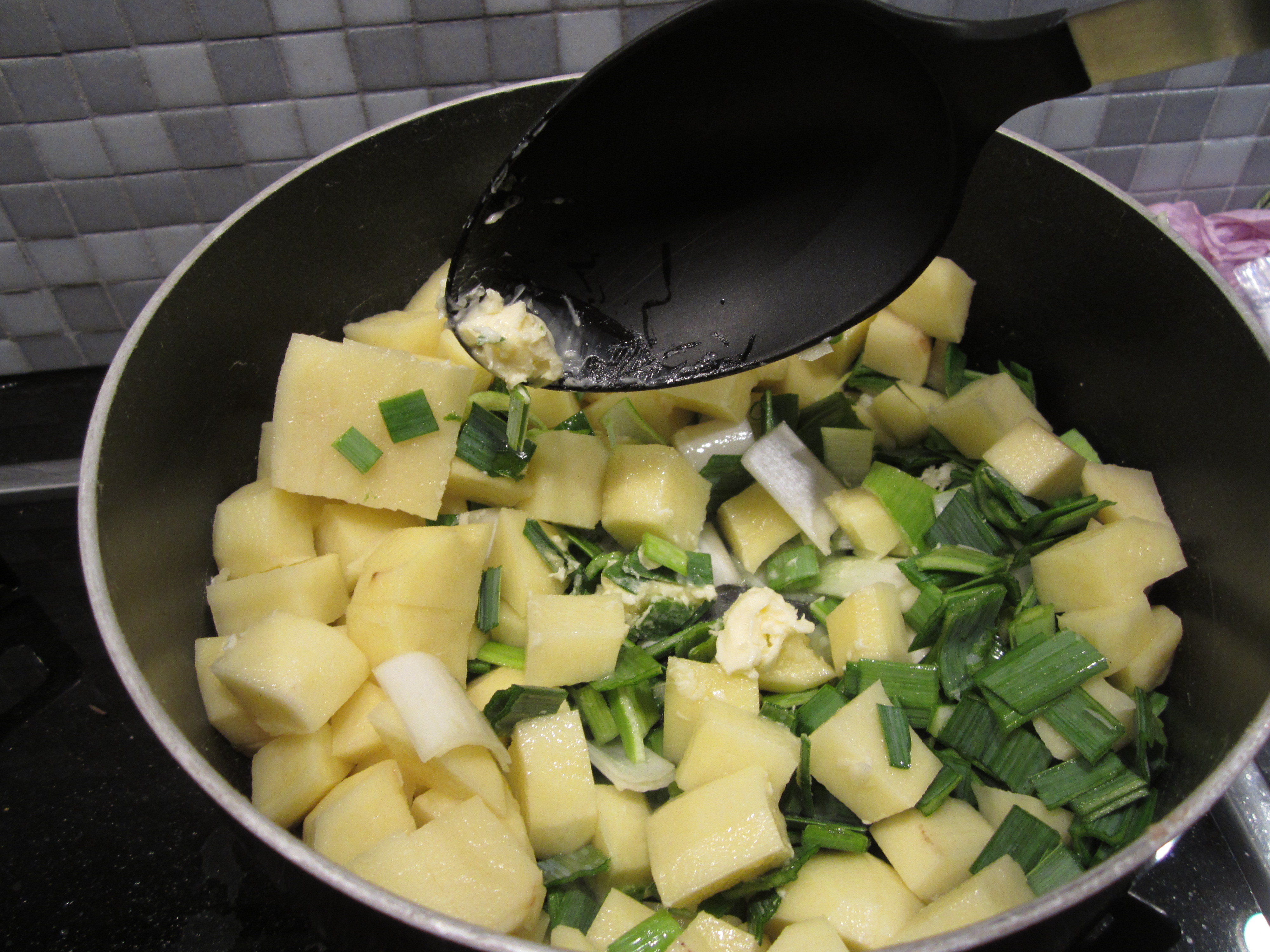 Denne uken inneholdt posen blant annet poteter og purre, og det var det som ble utgangspunktet for middagen i dag.