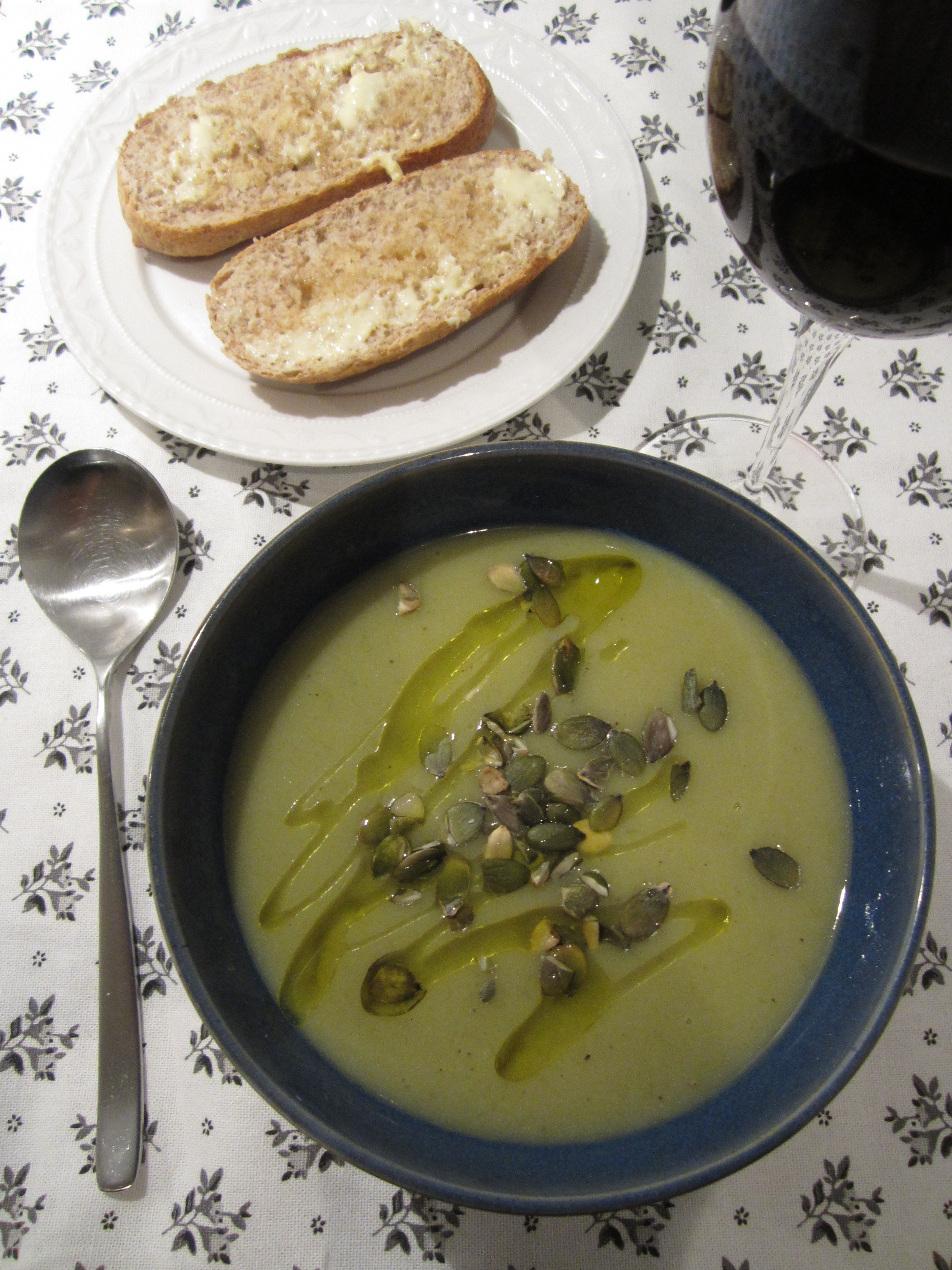 Ved servering helte jeg over noen grovhakkede gresskarkjerner og litt olivenolje.