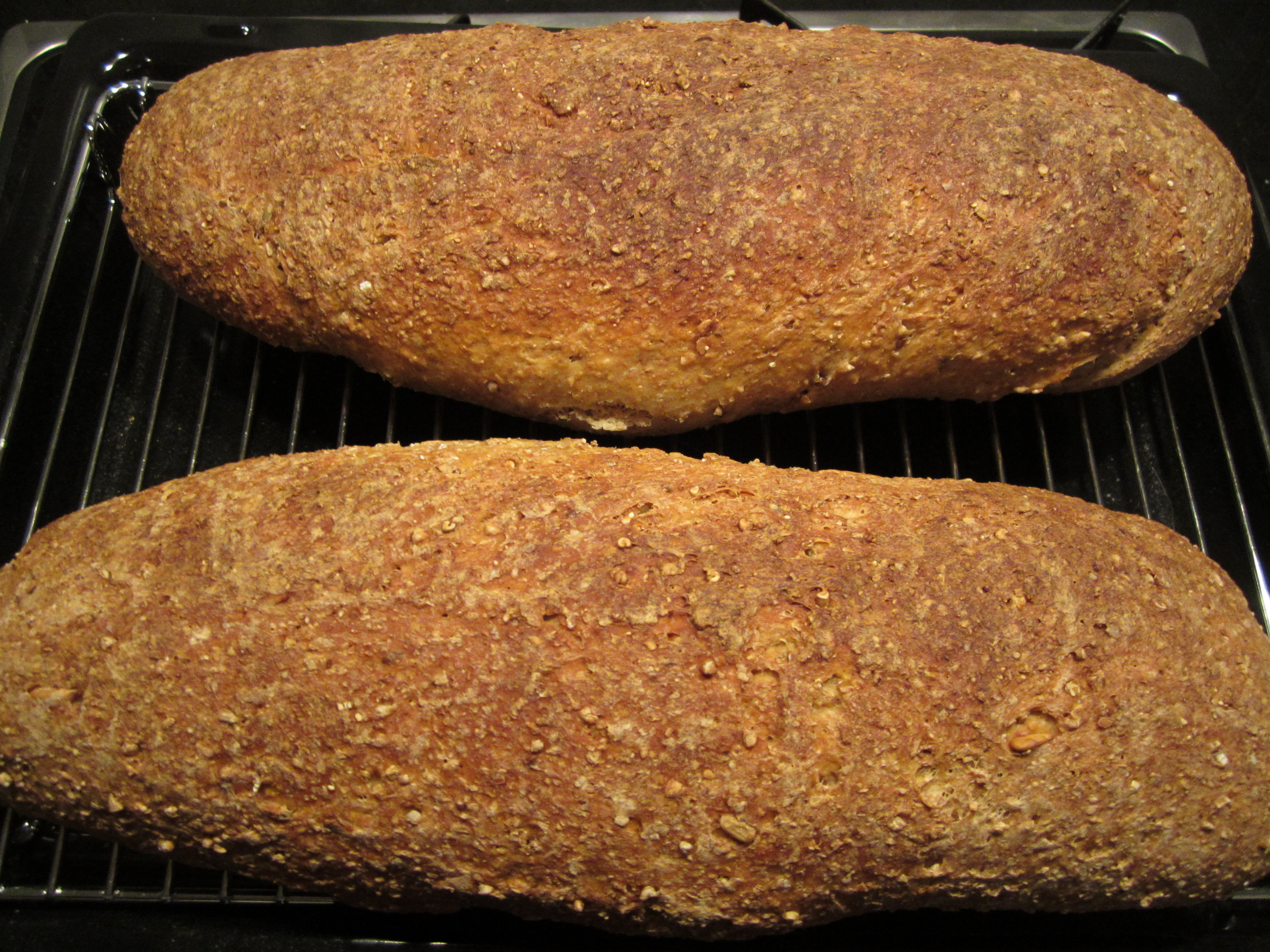 Stek på 225 grader i 10 minutter. Senk så temperaturen til 200 grader og stek brødene i ytterligere 15 minutter. Brødene er ferdig stekt når det kommer en slags hul lyd når man dunker lett på undersiden. Avkjøl på rist.