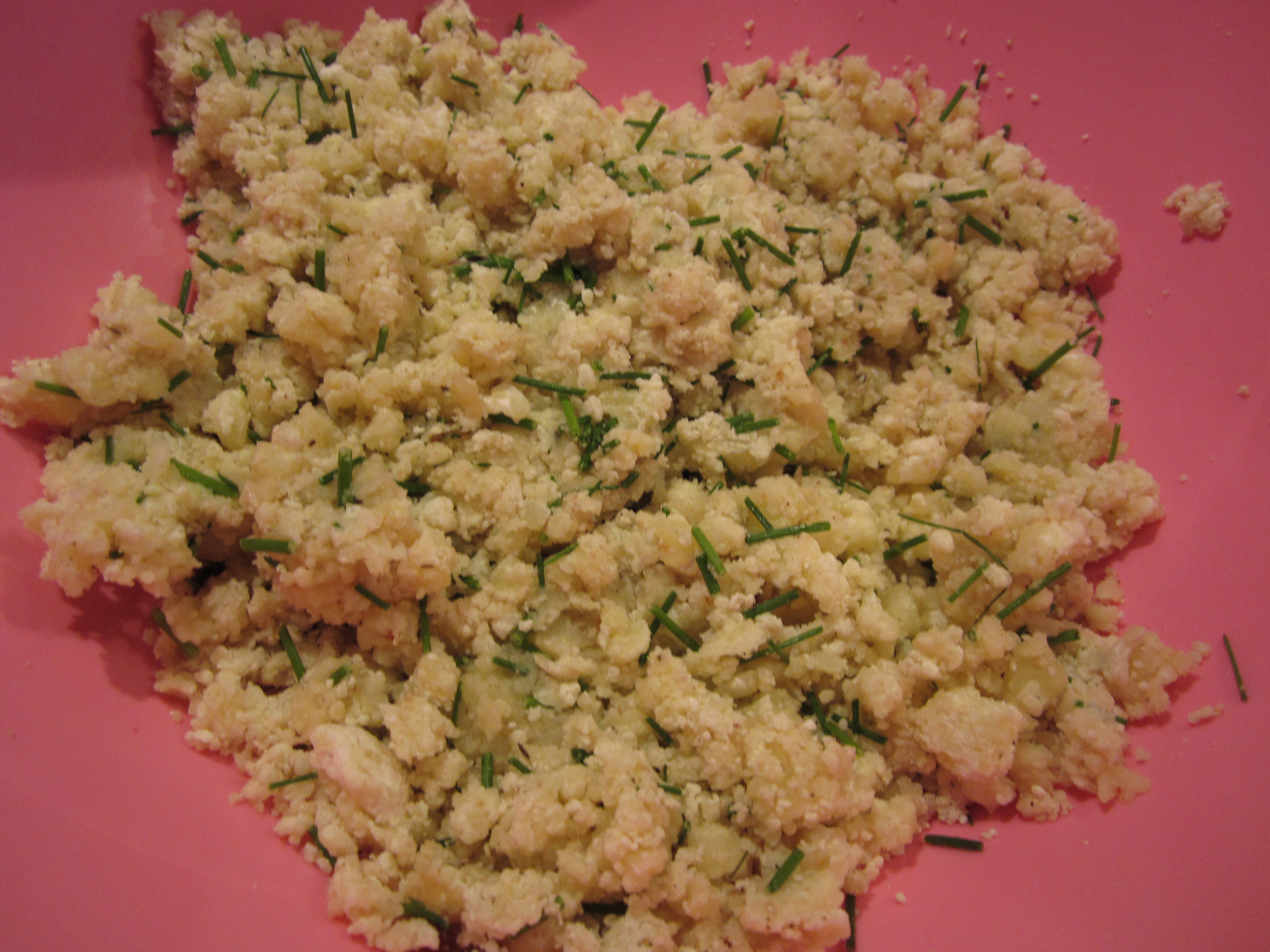 Vask og skrell potetene. Kok eller damp til de er møre tvers i gjennom. Mos så potetene grundig. Tilsett så resten av ingrediensene og bland godt sammen.