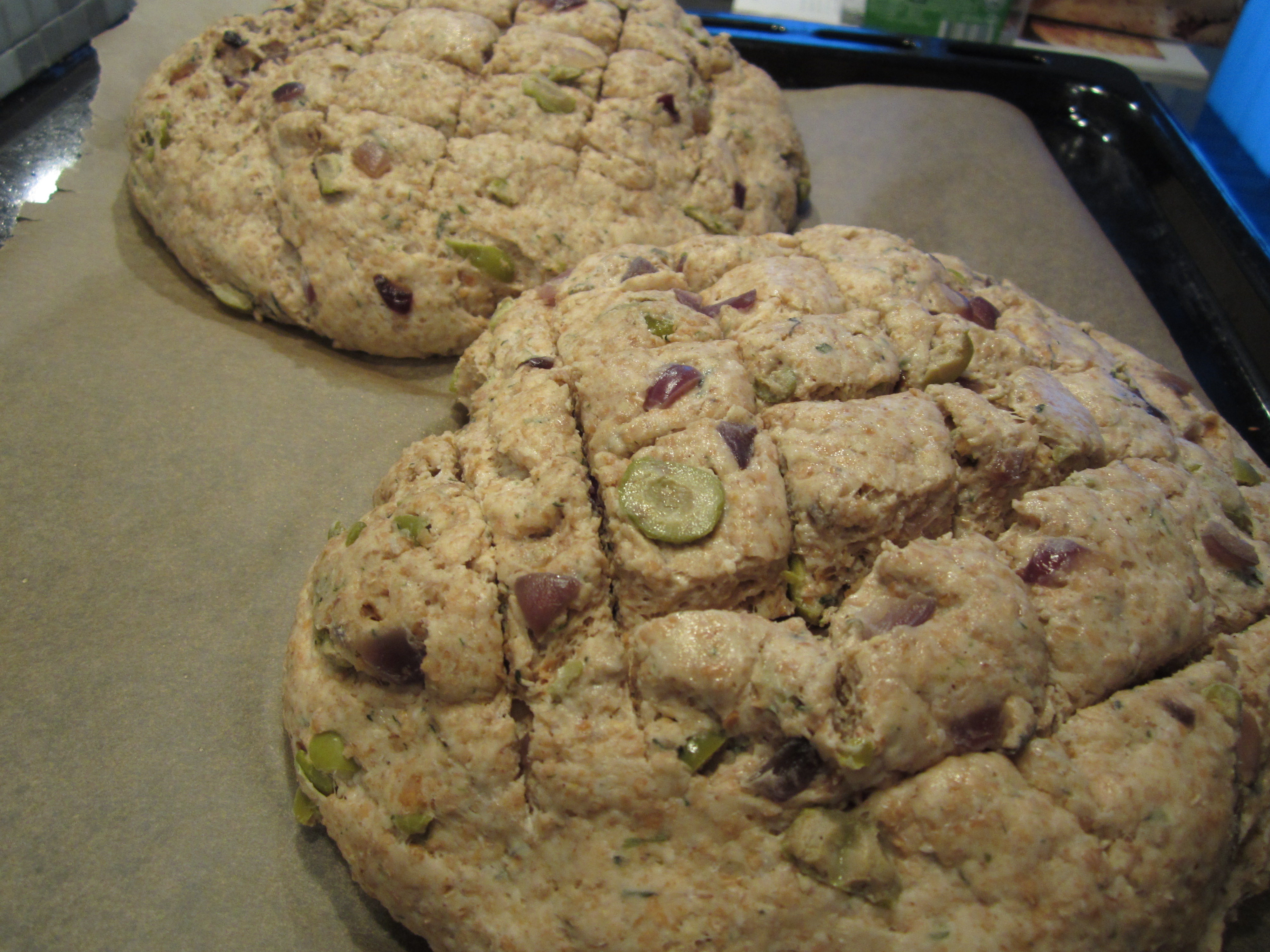 PS: Jeg har også brukt oppskriften til å bake brytebrød. Det ble da 18 rundstykker lagt tett i tett i en liten langpanne. Halverte da steketiden. Jeg erstattet oliven med soltørket tomat, kjempegodt det også!
