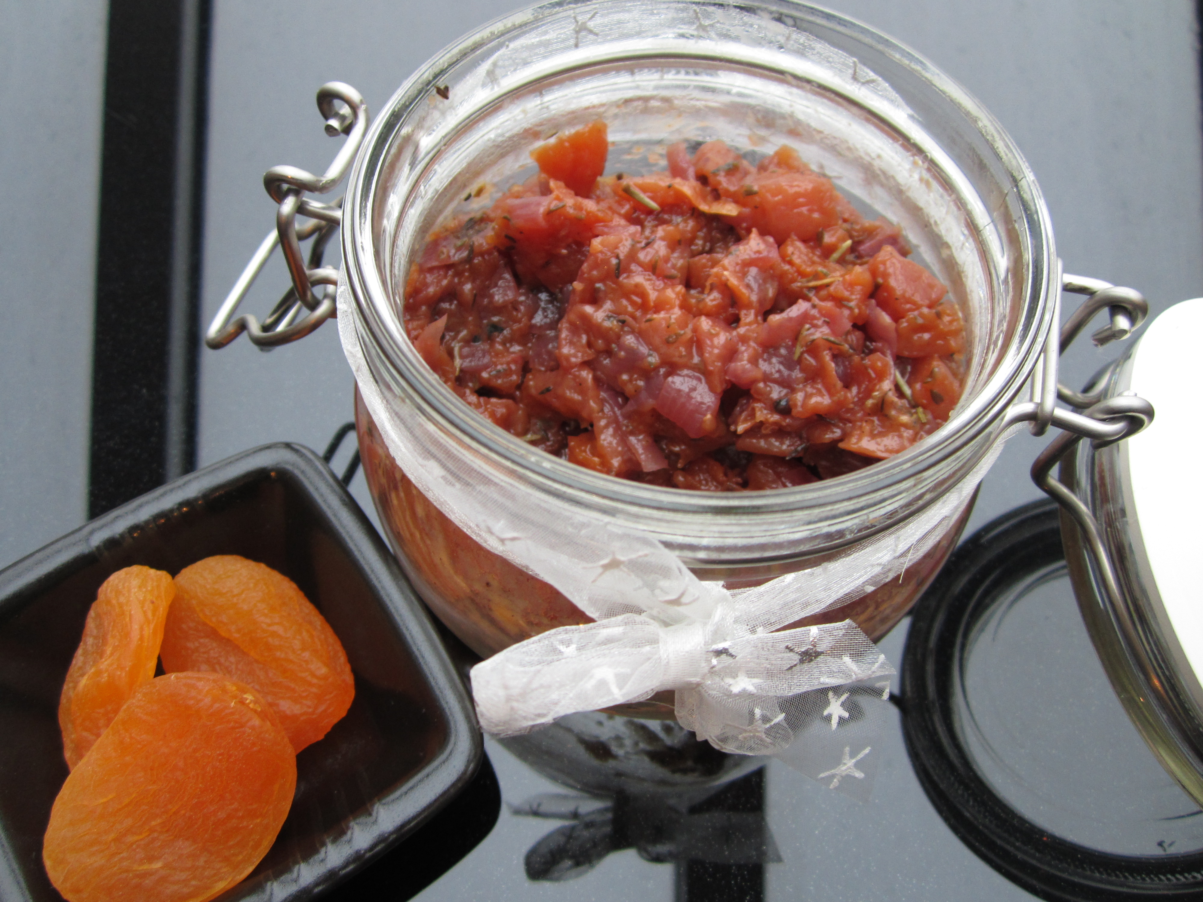 Når chutneyen er blitt tykk kan pannen tas av platen. La den avkjøles og hell så over på rene glass. Oppbevares i kjøleskap og er holdbar i 3-4 uker.