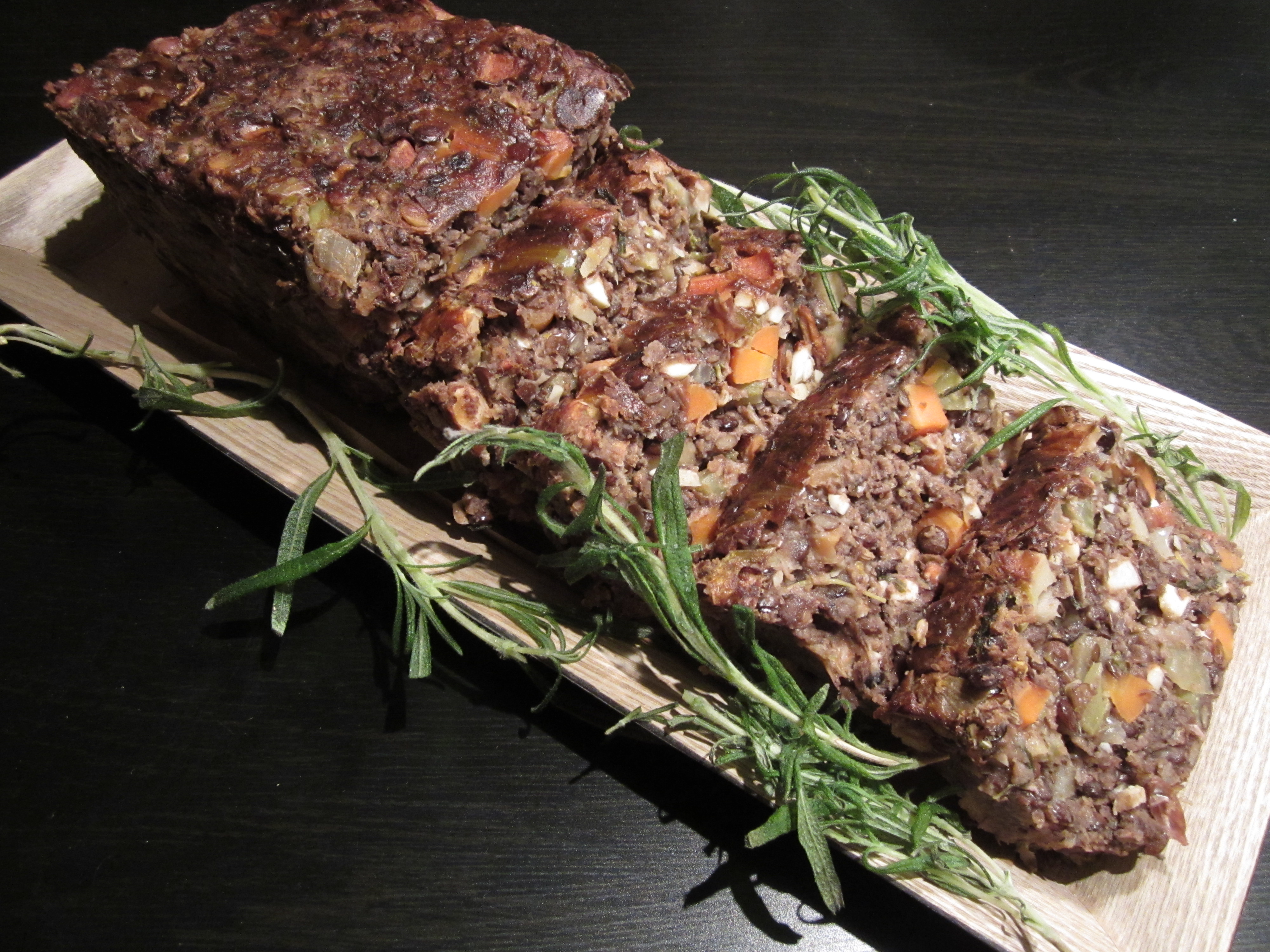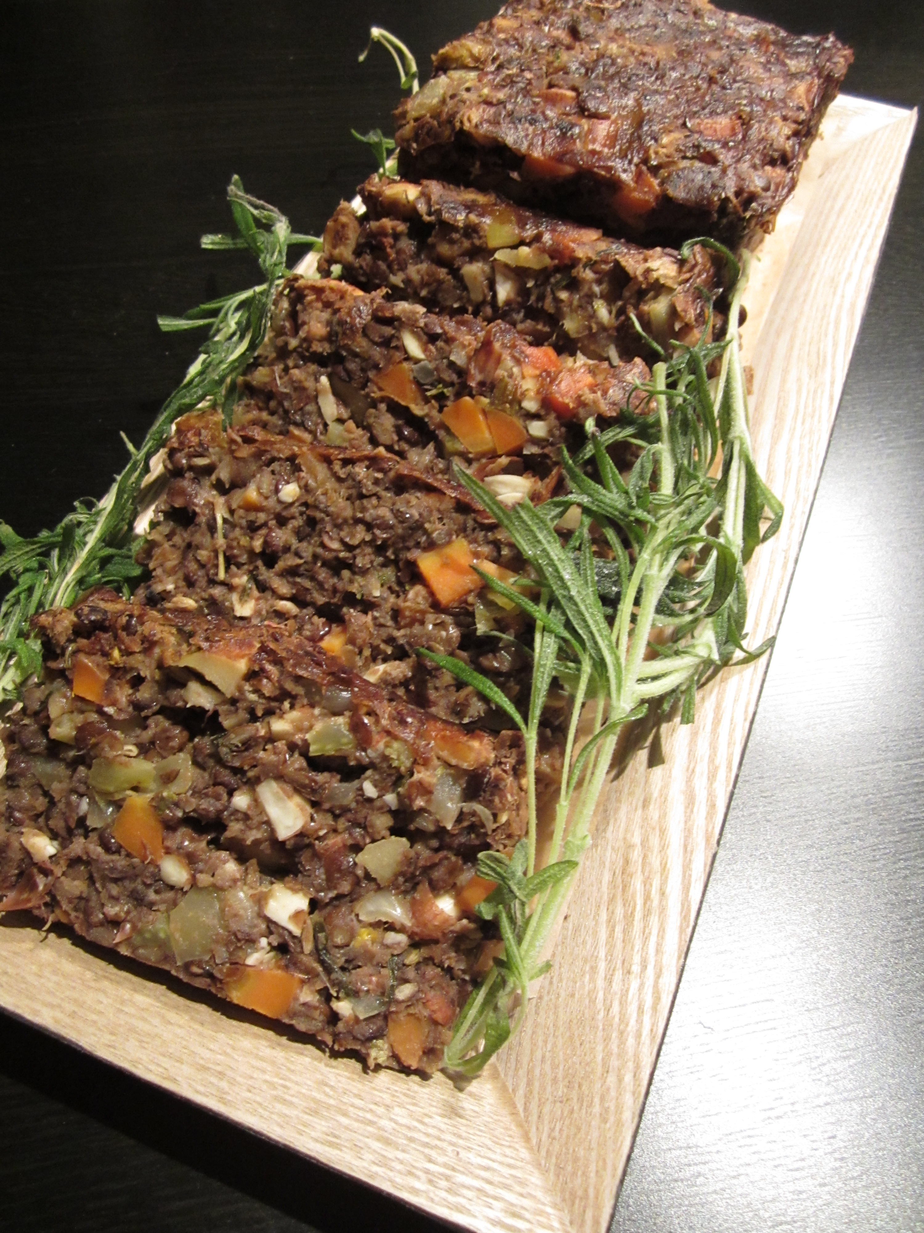 Vend grønnsaksblandingen inn med linsene. Bland så inn eplemos og grovt hakkede mandler. Ha i en ferdig smurt brødform. Jeg toppet steken med sjysaus fra Rimi som glasur.
