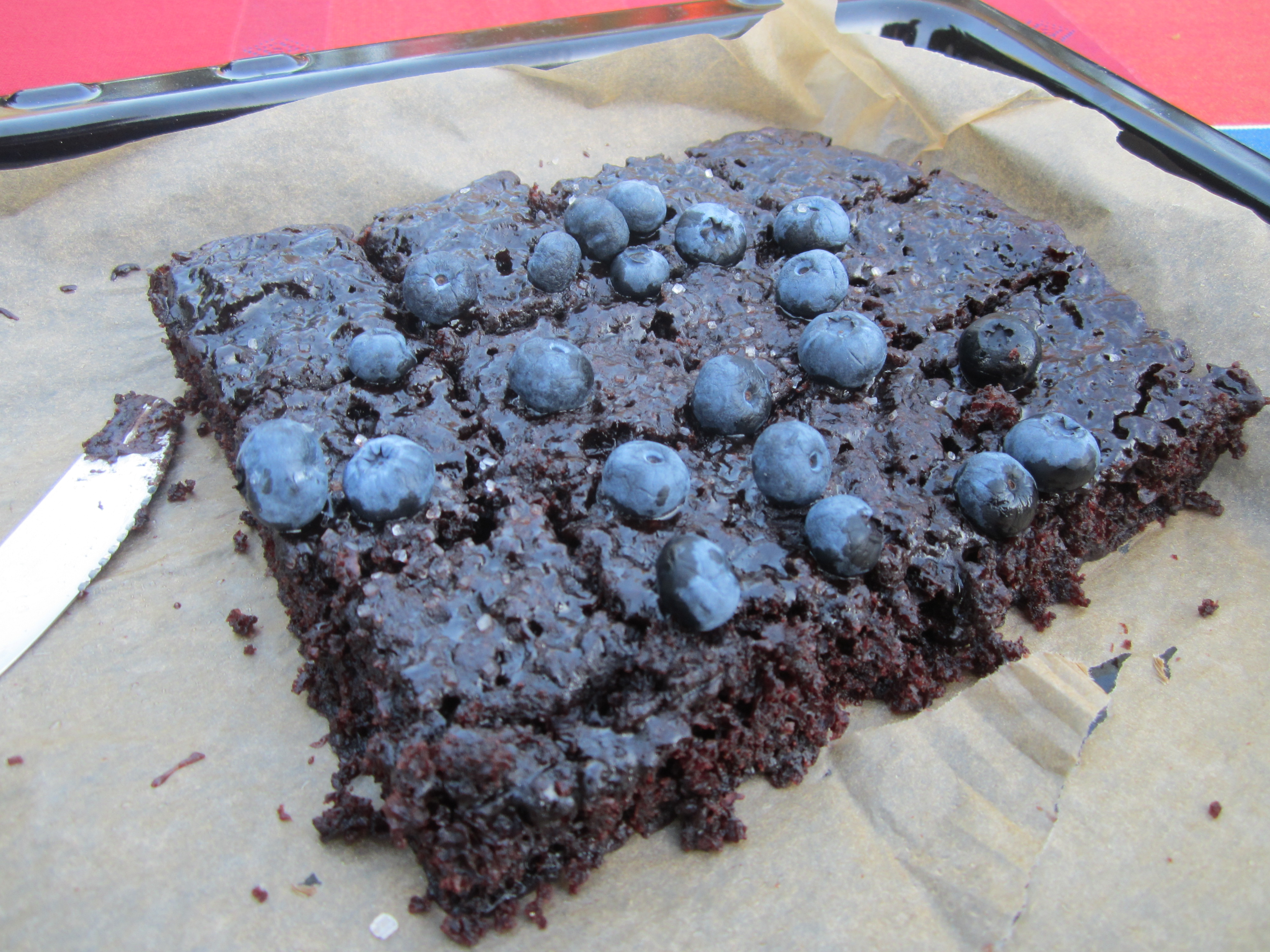 Bland sammen de tørre ingrediensene i en bolle. Visp inn vannet litt etter litt, og deretter olje og eddik. Hell røren i en form, jeg brukte en liten langpanne.