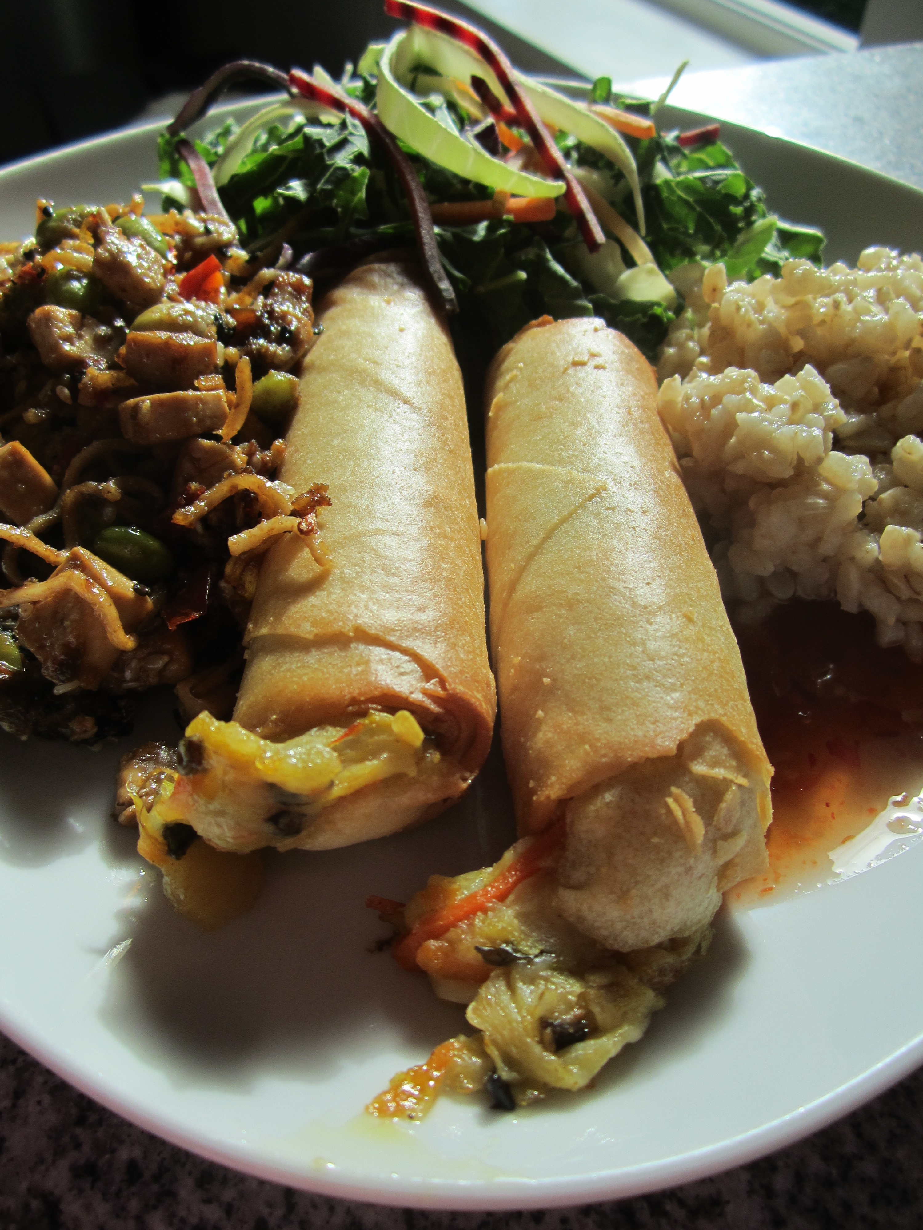 Det er ikke hver dag man har tid til å stå ved kjøkkenbenken og forberede middag. Hverdagsmat vil jeg kalle dette: ferdige vårruller servert med gårsdagens rester.
