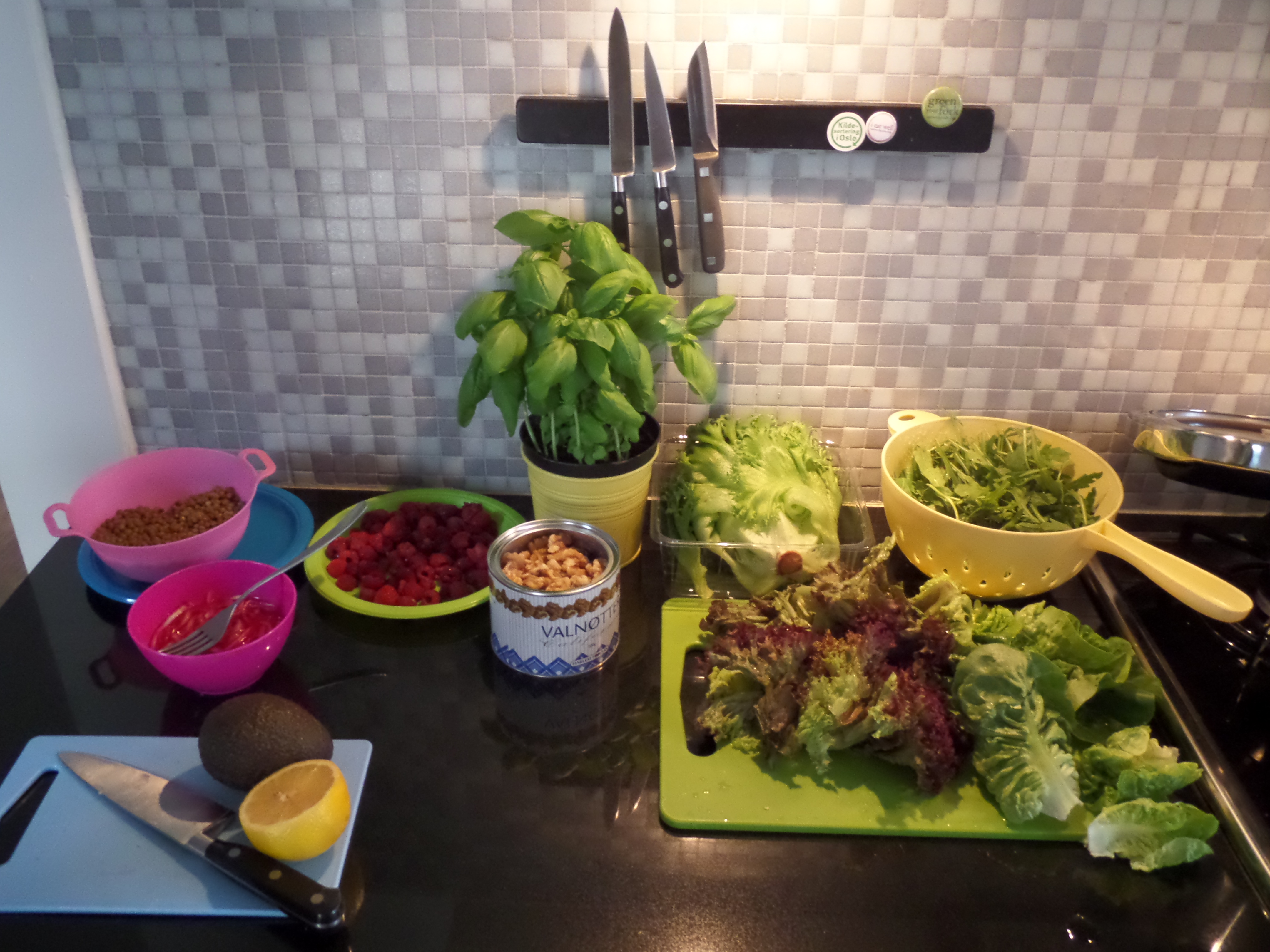 Pizzaene stekes så på varmluft på 225 grader i ca 10 minutter. Legg på ruccola, skivet avokado og tykk balsamicodressing før servering.
