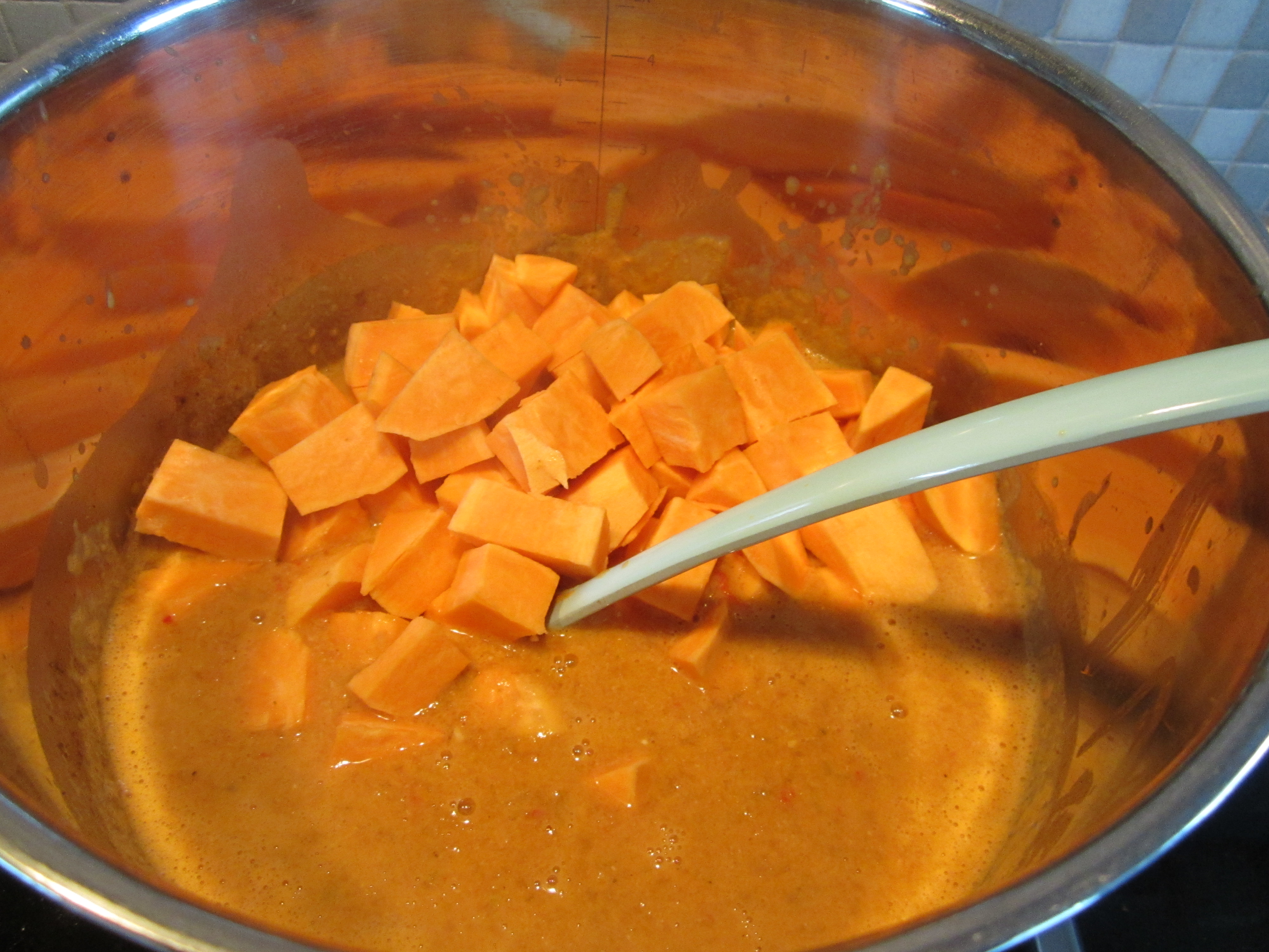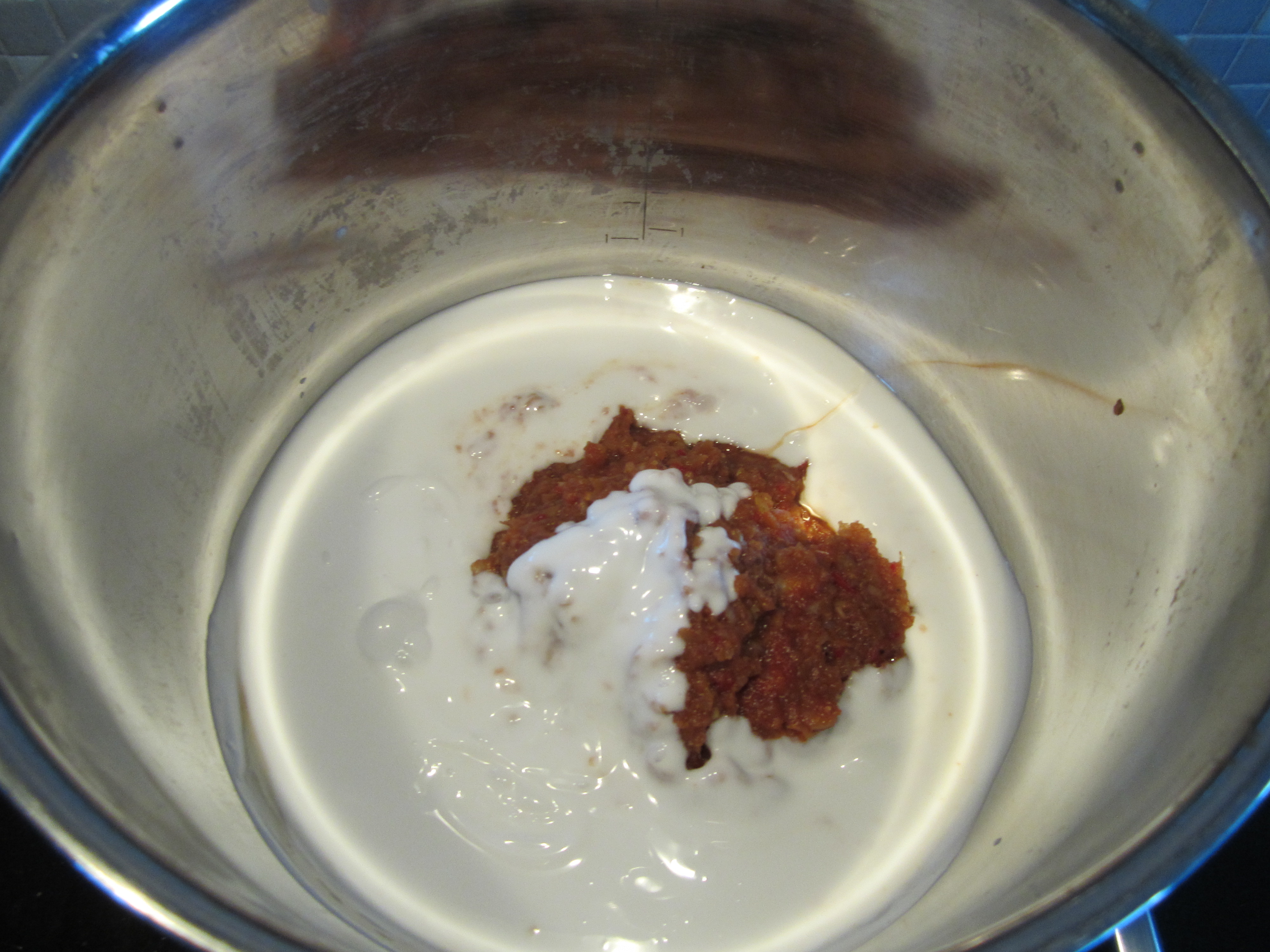 Tradisjonelt er det så vidt meg bekjent vanlig å bruke fiskepudding og annen sjømat i hvit saus. Jeg velger å bruke krydret tofu som hovedingrediens, samt sjampinjong, gulrot og erter.