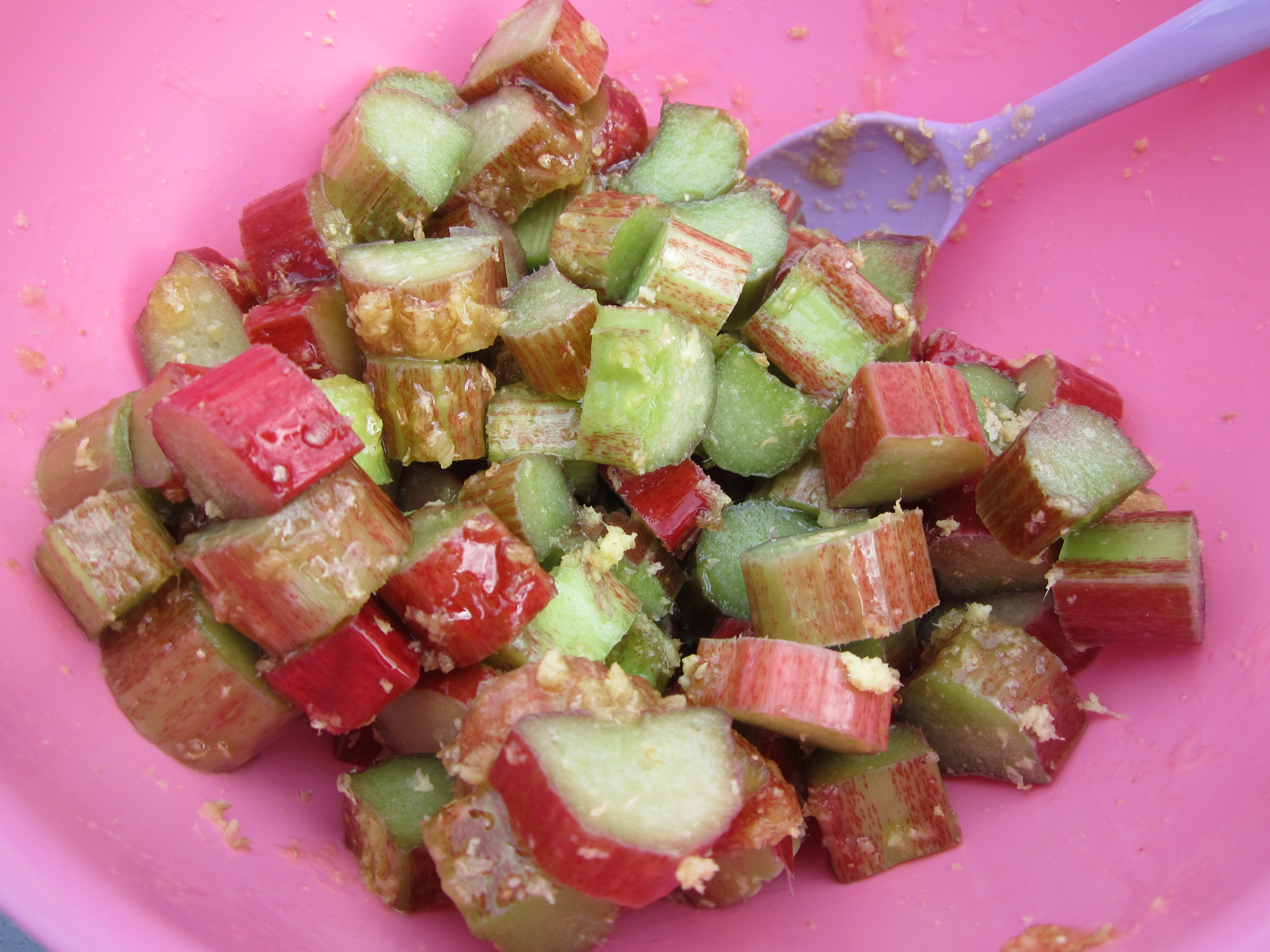 500g rabarbra, skåret i ca 1 cm tykke skiver