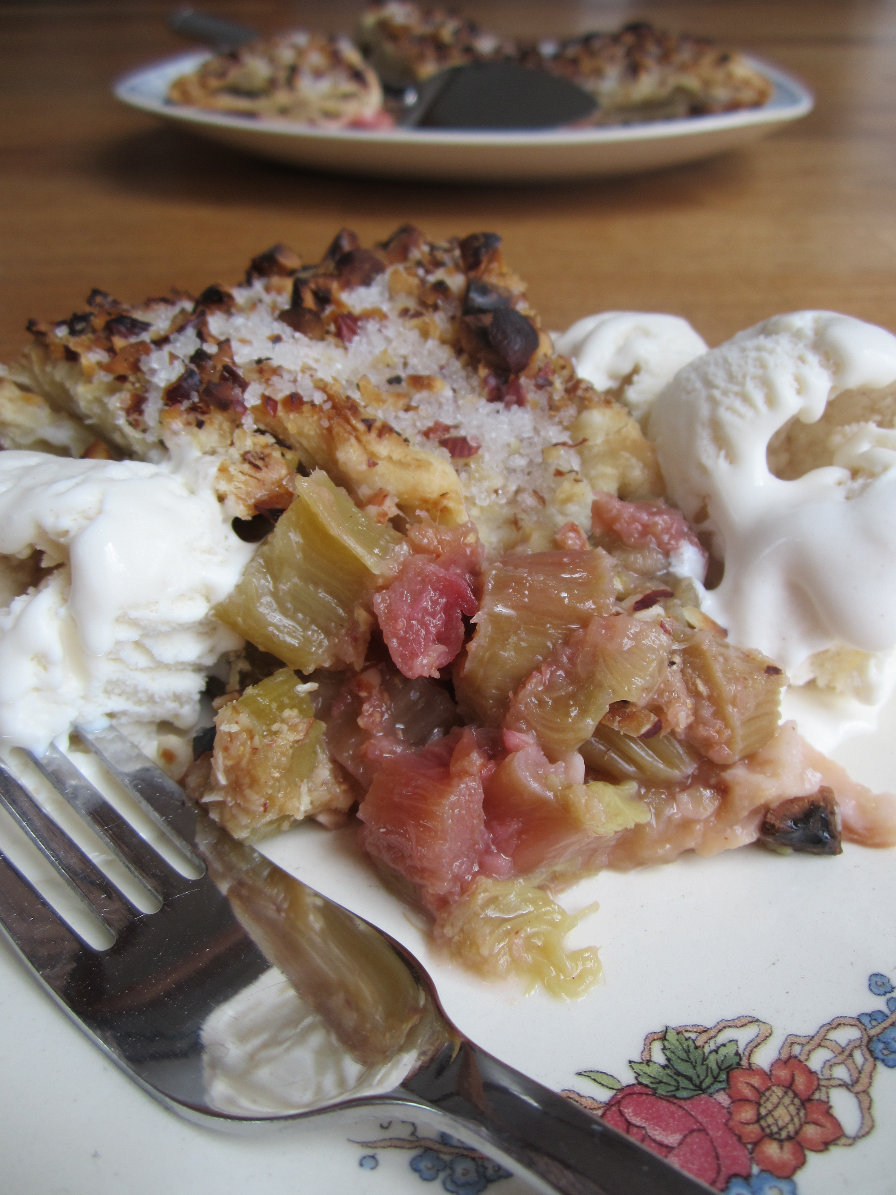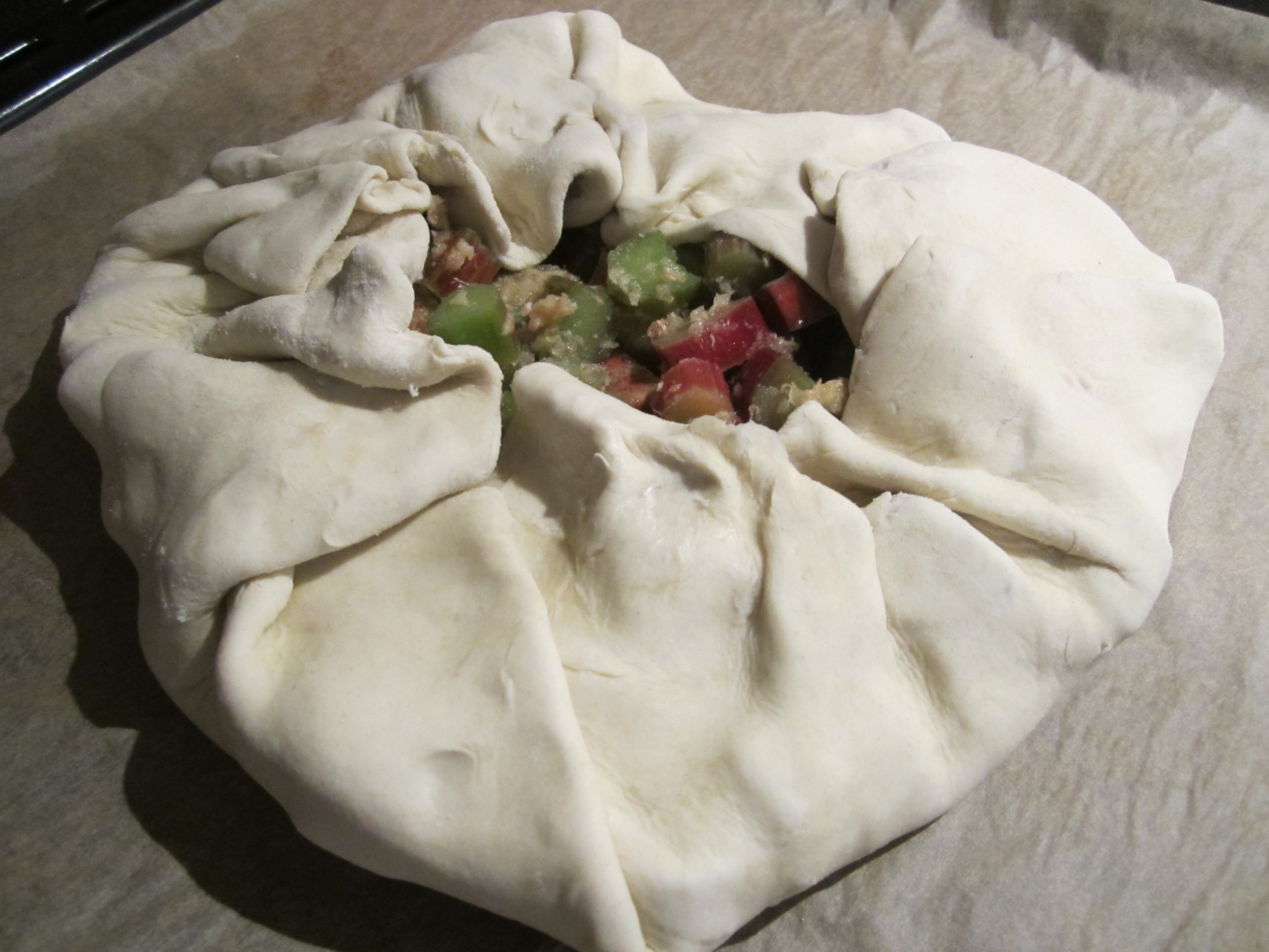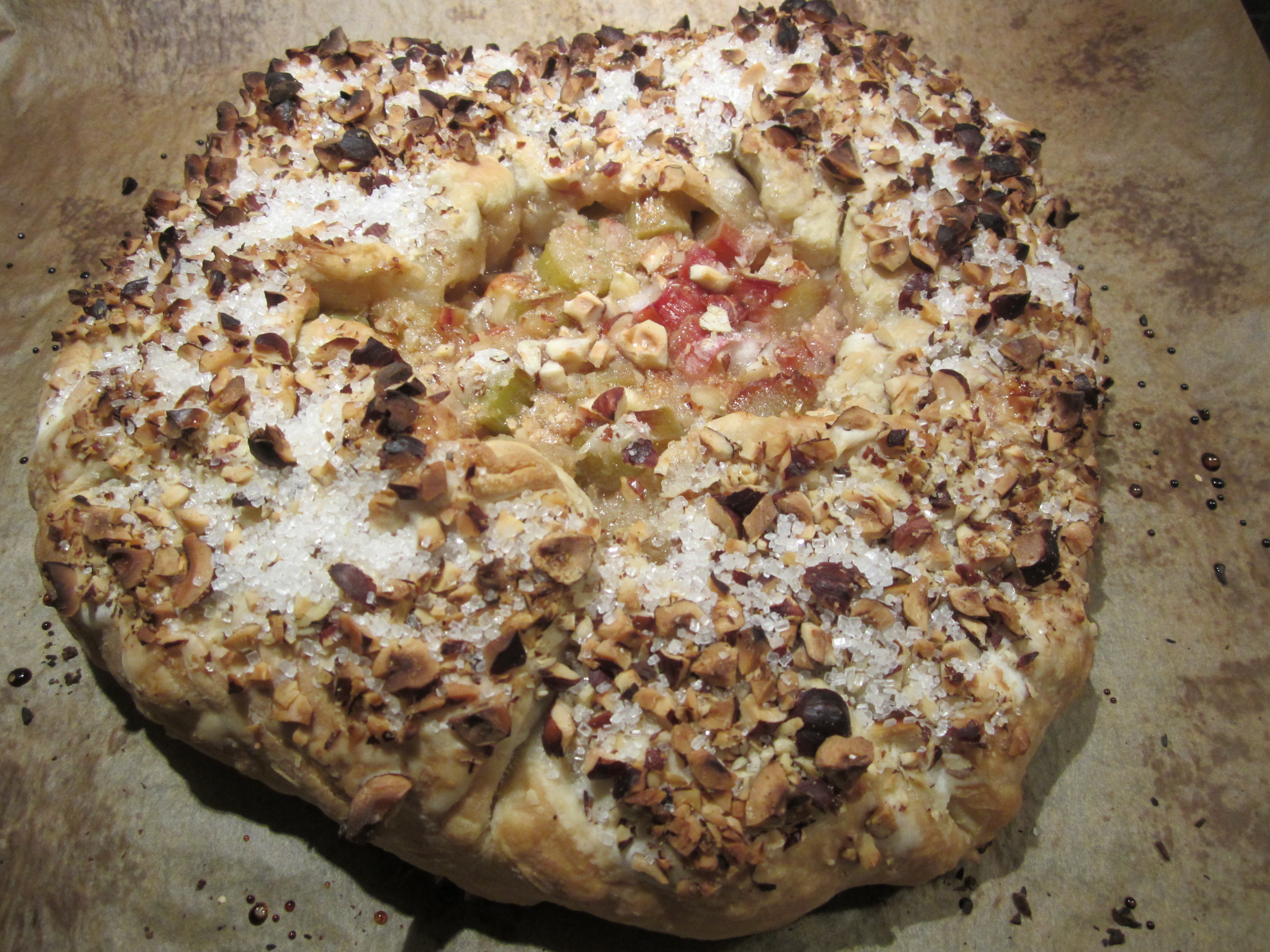 Det sies at rabarbra helst bør spises før St. Hans for å unngå at den blir seig eller får træler. Akkurat det har jeg ikke kunnskap til å uttale meg om, men i går var det i alle fall St. Hansaften og vi feiret med å bake en nydelig galette av butterdeig fylt med rabarbra. Den er inspirert av en oppskrift fra boken The Five-a-day Cookbook: 200 Vegetable & Fruit Recipes. Det aller beste er balansen mellom søtt og syrlig, og med smak av ingefær er den fantastisk!