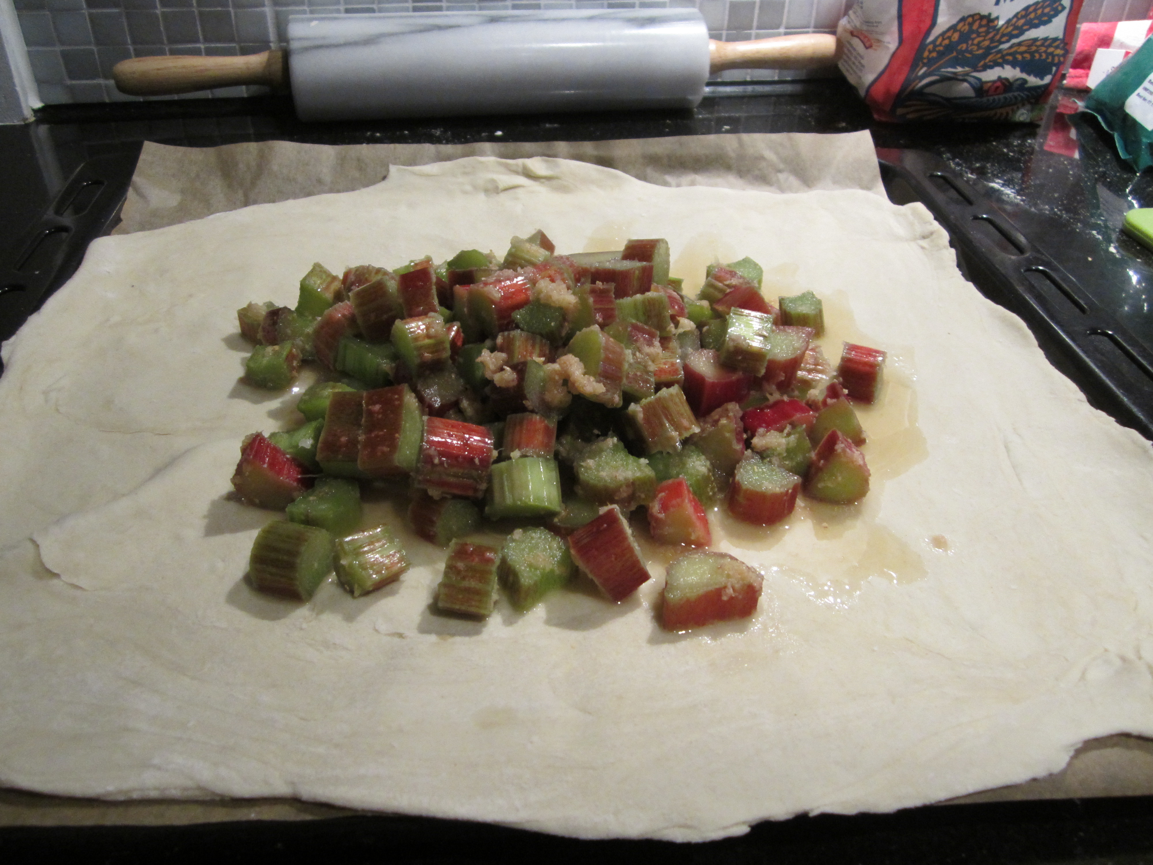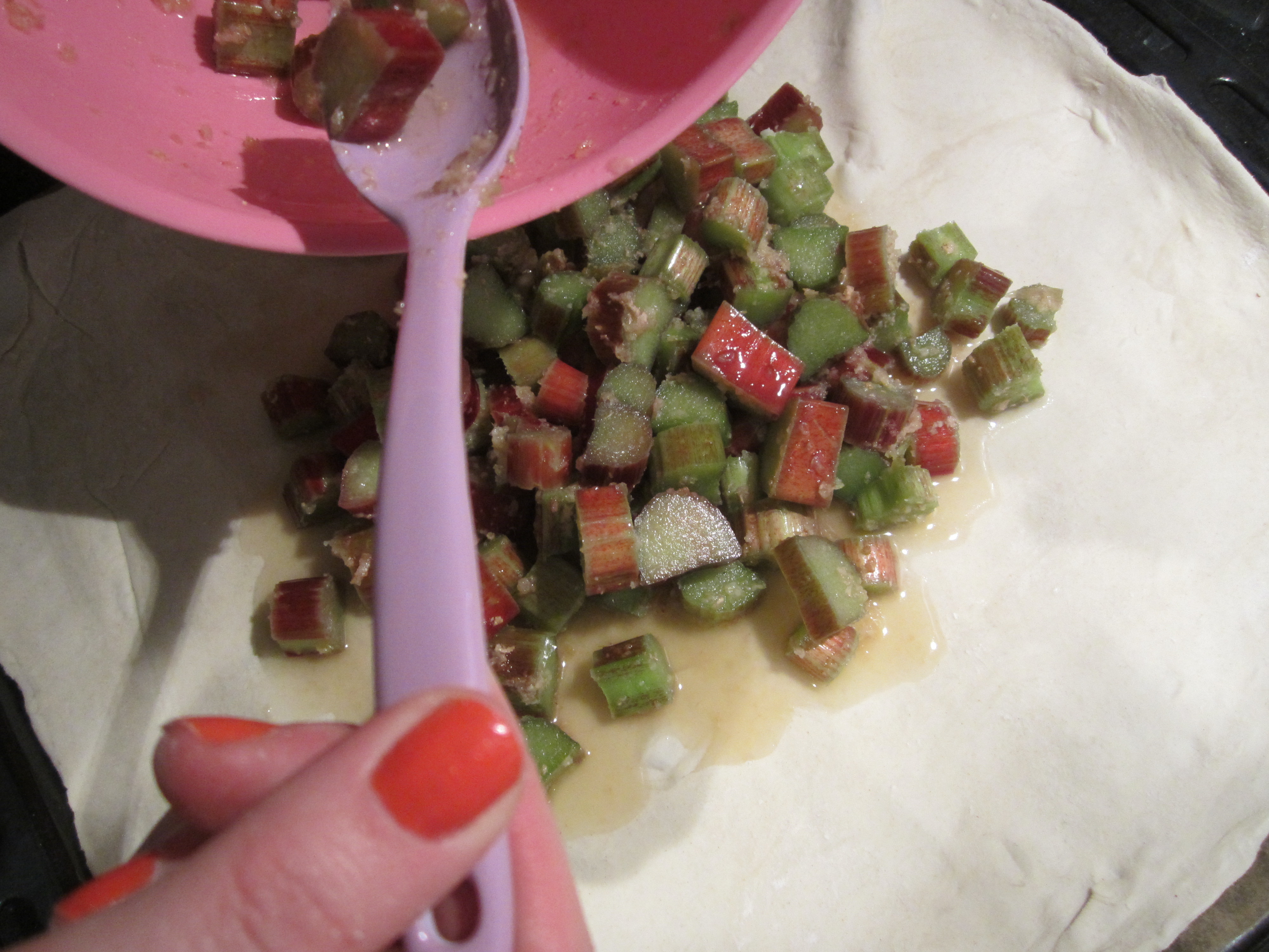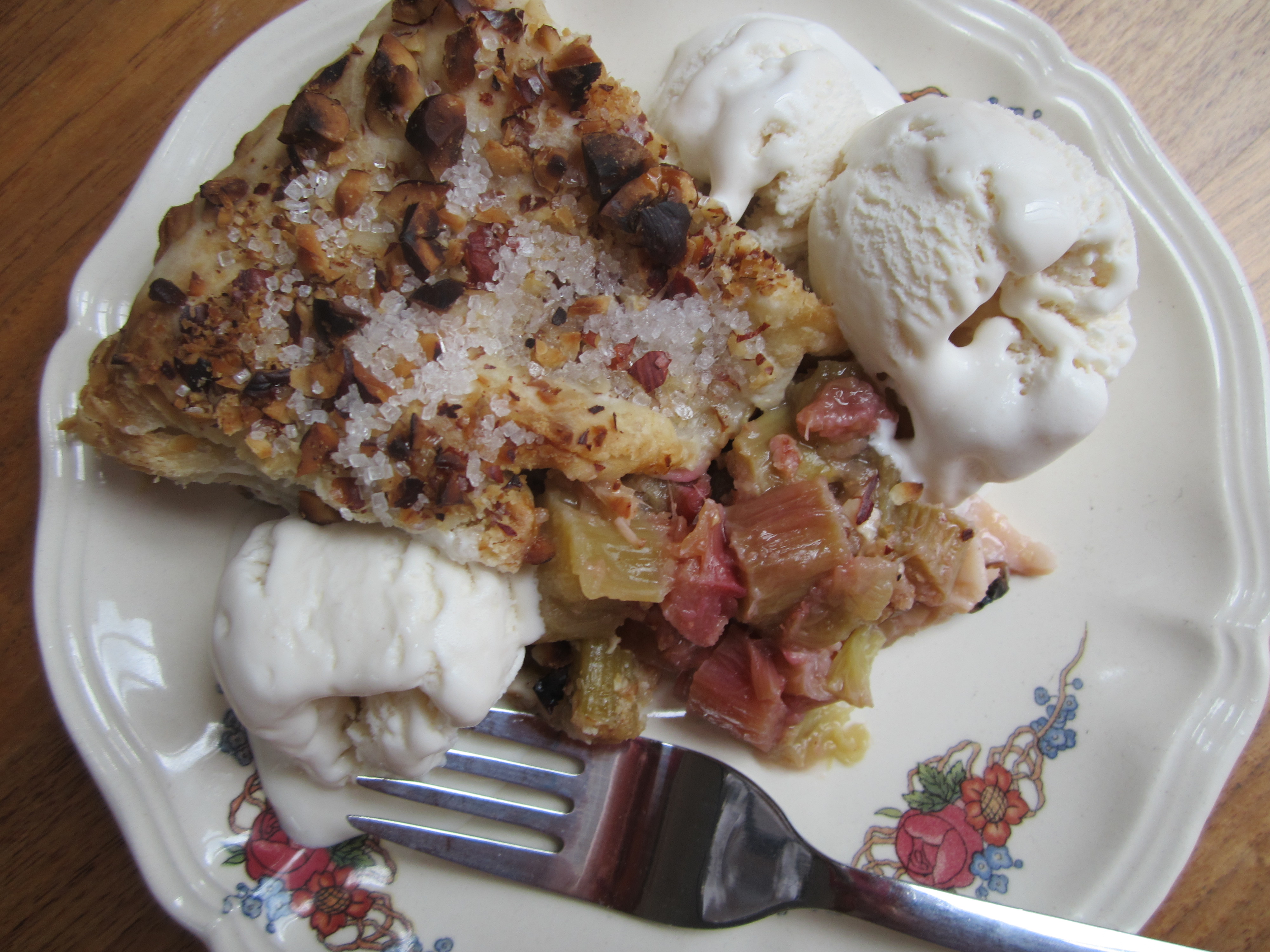 Det sies at rabarbra helst bør spises før St. Hans for å unngå at den blir seig eller får træler. Akkurat det har jeg ikke kunnskap til å uttale meg om, men i går var det i alle fall St. Hansaften og vi feiret med å bake en nydelig galette av butterdeig fylt med rabarbra. Den er inspirert av en oppskrift fra boken The Five-a-day Cookbook: 200 Vegetable & Fruit Recipes. Det aller beste er balansen mellom søtt og syrlig, og med smak av ingefær er den fantastisk!